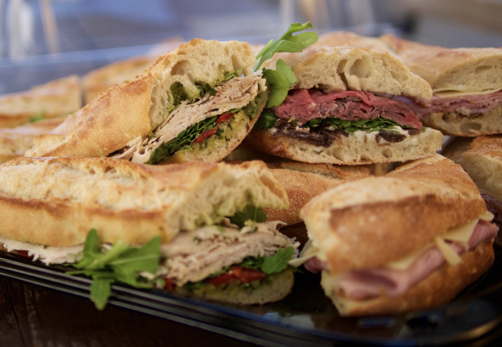 Options: Turkey & Fig, Mozzarella & Pesto, Ham & Comte, Roast Beef, Brie & Tomato Marmalade, Fig & Chevre